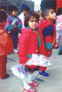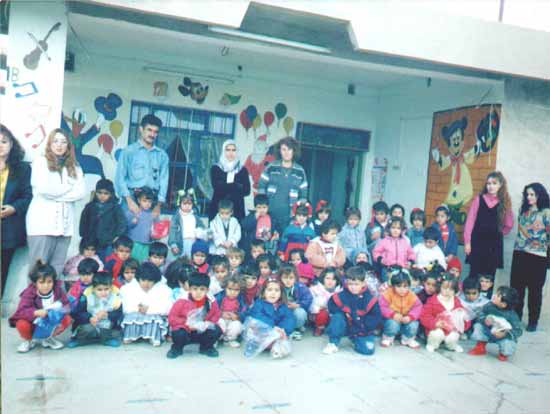 Kindergärten gehören schon seit mehreren Jahrzehnten zu den üblichen sozialen Einrichtungen in Irakisch-Kurdistan. Doch seit dem Aufstand der Kurden 1991 gegen das Regime in Bagdad und der daran anschließenden Errichtung einer "Autonomen Zone" im Norden des Irak wurde es für die Kindergärten zunehmend schwerer zu arbeiten, da die wirtschaftliche Lage schlecht und viele der vormals vorhandenen Einrichtungen, wie zum Beispiel Kindergartenbusse, aufgrund der schlechten ökonomischen Situation nicht mehr unterhaltbar sind. Besonders betroffen von dieser Situation sind die Flüchtlingskinder in den sogenannten "Collective Towns". Viele von ihnen erfuhren in ihren kurzem Leben bisher kaum andere Erfahrungen als Krieg und Flucht, einige von ihnen sind zunächst vor Saddams Truppen aus der Region Kirkuk in die südlichen Teile Irakisch-Kurdistans und kurz darauf während der innerkurdischen Parteienkämpfe ein zweites Mal weiter nach Norden geflohen, wo sie jetzt in Notunterkünften (sog.Pre-Fabs) besonders in den Collective Towns Barzian und Bainjan unter menschenunwürdigen Bedingungen Leben. Für diese Kinder ist ein Kindergartenbesuch besonders wichtig, der sie in ihrer Entwicklung fördert und unterstützt, aber auch auf die Schule vorbereitet. Da die Ernährungssituation der Kinder extrem schlecht ist, (viele werden von Ärtzen unter der Kategorie "mangelernährt" eingestuft), erhalten sie im Kindergarten ein Frühstück mit Milch und eine warme Mahlzeit zum Mittagessen.