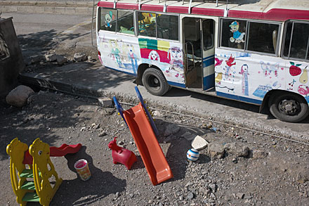 For the past two and a half years, Wadi social workers have been visiting remote villages in Iraqi-Kurdistan in buses that have been transformed into mobile playgrounds. In their trips to the villages, children like Gulala and Hiwa eagerly await their arrival. These Wadi buses are equipped with games and basic playground facilities and bring a lot of joy to the lives of these village children, whose childhoods are often too short, and where playgrounds and toys are rare.